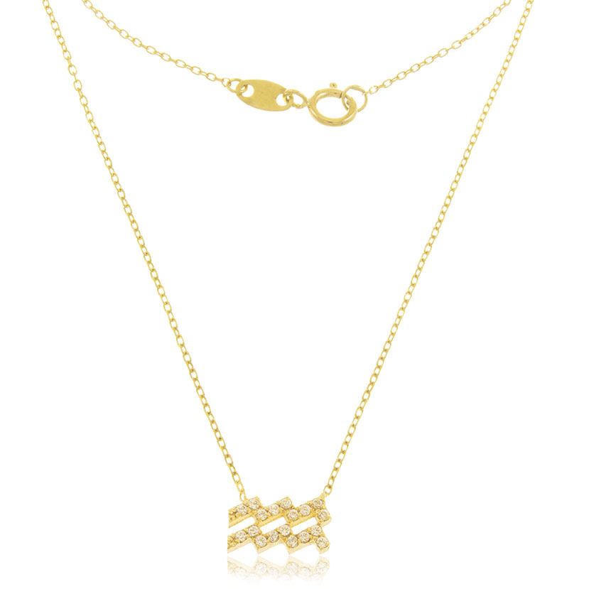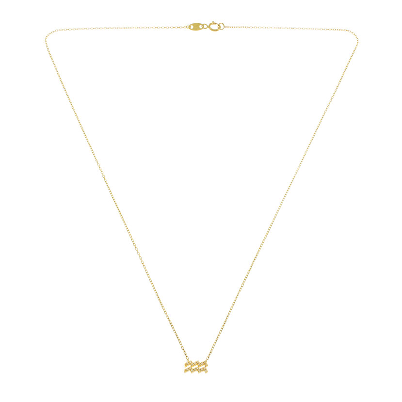 Elegant choker with a delicate 18k Gold Forged Chain at 40cm in length. Set off with a charming Aquarius zodiac symbol pendant, decorated with 18 small zirconias of 0.80mm each, adding a touch of subtle sparkle.