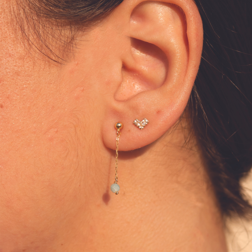 These 18 carat gold earrings combine gold and amazonite. amazonite is a semi-precious stone, known for its healing properties, as it is associated with relaxing and calming properties. It promotes emotional balance, mental clarity, spiritual growth and energy flow, helping us to free ourselves from attachments and blockages, and promoting emotional balance and self-confidence.