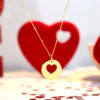 El diseño minimalista y elegante hace que este collar de corazón en oro 18k sea un accesorio versátil, perfecto para el uso diario o para momentos especiales. El calado y el mensaje personalizado lo convierten en un detalle único para expresar tus sentimientos de una manera sofisticada.