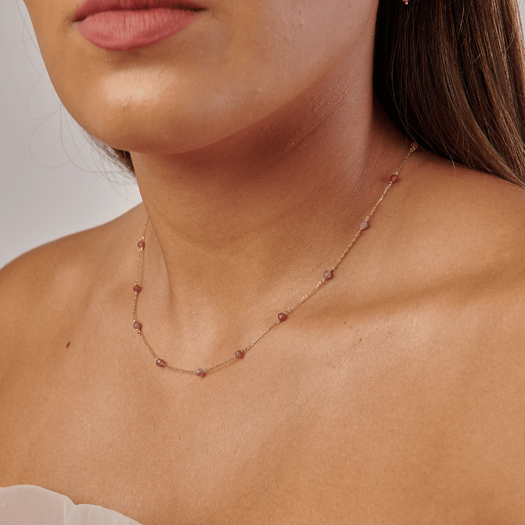 Collar con diseño de diecisiete piedras naturales turmalina.