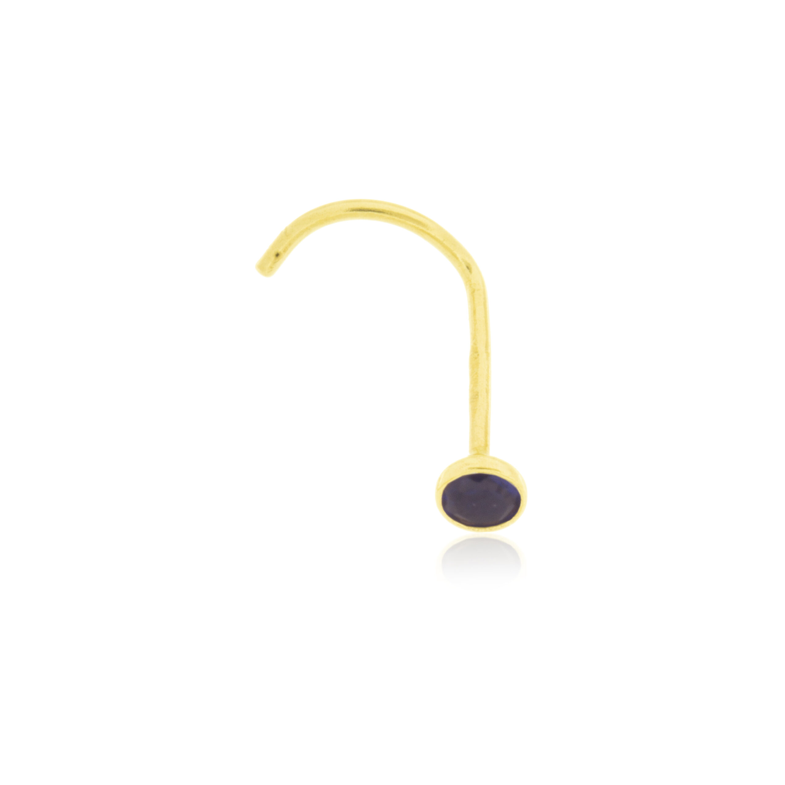 Piercing de nariz en oro 18 kilates para mujer. Un piercing compuesto por circonita azul redonda de 2 mm. Expresa tu personalidad con este colorido complemento en tono azul.