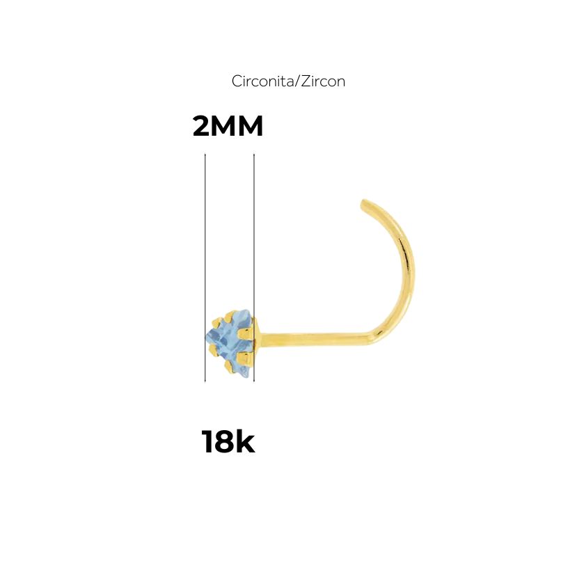 Piercing de Nariz en Oro 18k con Circonita Triangular color agua marina – 6 Garras
